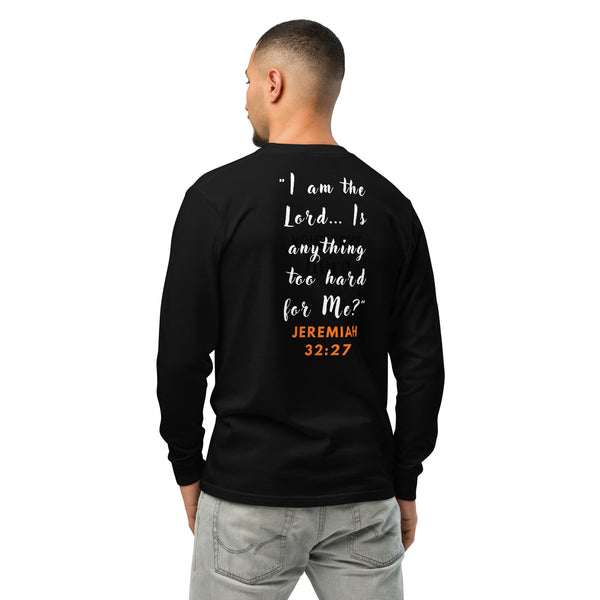 Scripture on back: Jeremiah 32:27 — “Is anything too hard for Me?”